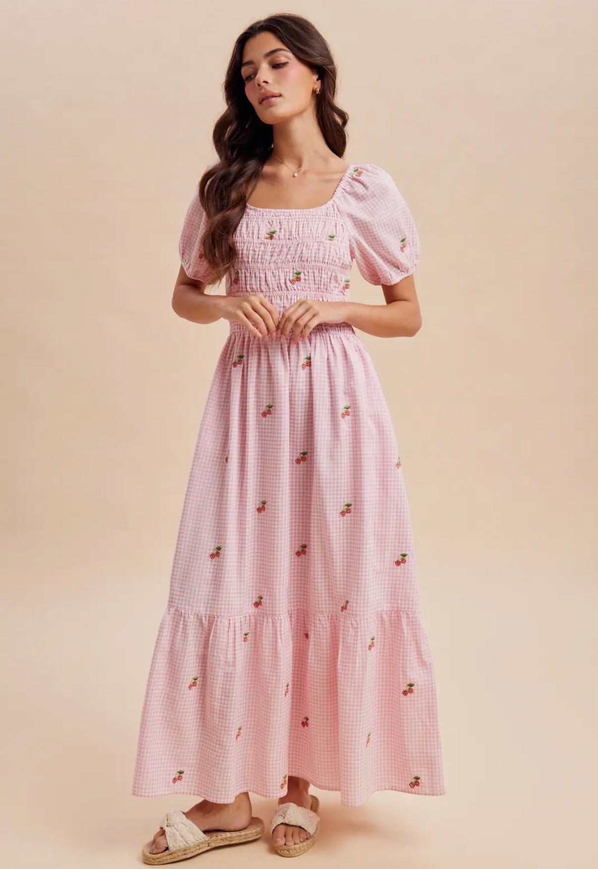 Adeline Gingham Strawberry Maxi Dress